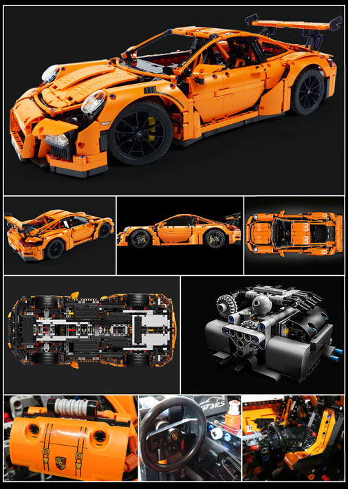 911 GT3 RS - Lego Technic Orange 1/8 - Nombre de pièces : 2704 - Dimensions : 57 x 25 x 15 cm Portes, capots arrière et avant ouvrants - Intérieur détaillé Moteur 6 cylindres à plat avec des pistons mobiles Numéro de série unique dans la boîte à gants - Auto-collants inclus Inclus livre spécial collectionneur, comprenant l'histoire de LEGO® Technic, des voitures Porsche GT, et des instructions de montage Lego Technic 42056 299,90 € TTC / Incl. Taxes