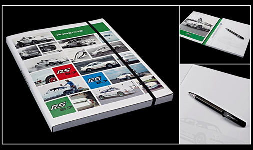Bloc-note avec Stylo Porsche 911 Carrera RS 2.7 100 pages blanches prédécoupées format A4 90g/m2 Photo faible contraste de la Carrera RS sur chaque page Fermeture par élastique - Stylo bille à l'intérieur Porsche Design WAP0500500G