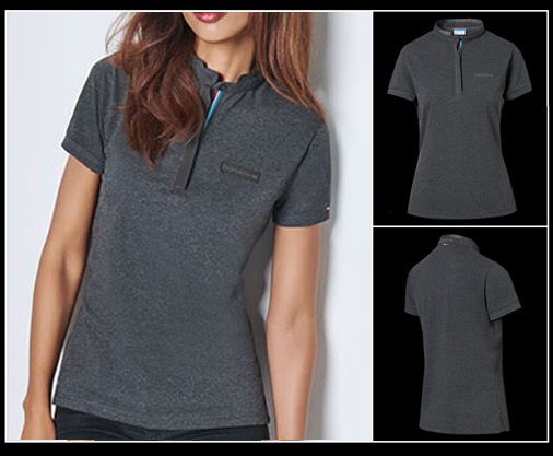 Polo femme Porsche Classic Couleur gris foncé chiné - Discrets détails tricolores Matière 76 % polyester / 20 % coton / 4 % élasthanne Porsche Design WAP717 79,95 € TTC / Incl. Taxes