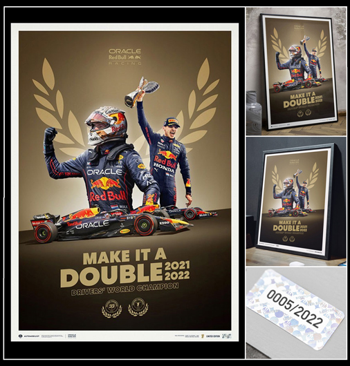 Poster Red Bull F1 World Champion 2021 / 22 Par l'équipe d'artiste The Automobilist 50 x 70 cm - Papier 175g/m2 - Cadre non fourni Edition limitée - 2022 exemplaires numérotés 69,95 € TTC / Incl. Taxes