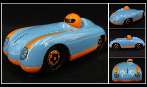 Voiture de course Spyder Vintage look Speedster 356 pour enfant Design made in Germany - Roues silencieuses - Longueur 15 cm Couleur Bleu Gulf / Orange - Schuco 450987700 19,95 € TTC / Incl. Taxes