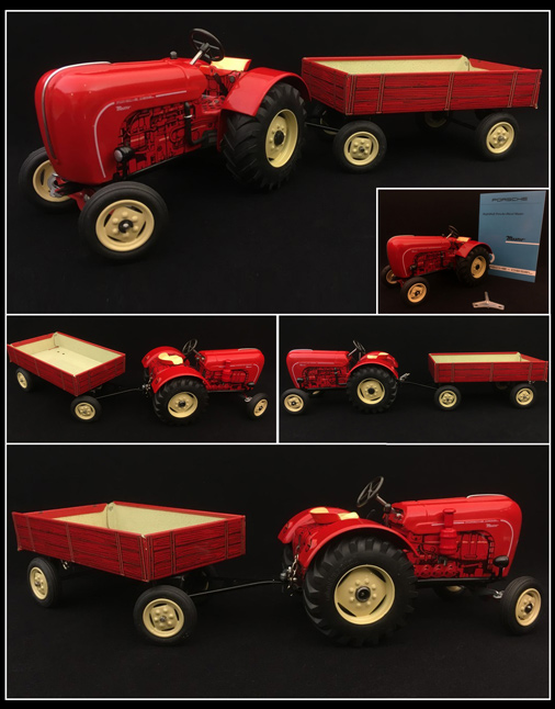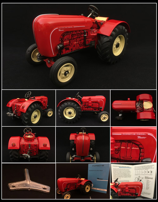 Porsche Diesel Schlepper Master 419 Federwerkantrieb - 3 Vorwärtsgange und 1 Rückwärtsgang Handbremse - Steuerbare Vorderachse Broschüre mit der Geschichte der Porsche Traktoren - Rot 1/25 - Kovap 0321