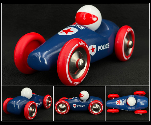 Miniature Vintage de course en bois Police Dimensions LxHxP : 17 x 8,5 x 7,5 cm - Livré dans une jolie boîte, prête à offrir Matière Bois Laqué, roues en métal et caoutchouc - Couleur Bleu / Rouge Made in France - Vilac 2247P 31,95 € TTC / Incl. Taxes