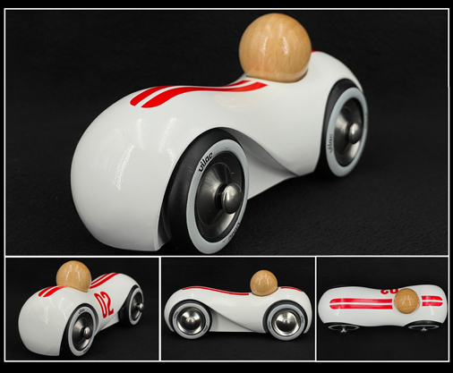 Miniature Vintage de course en bois Streamline Dimensions LxHxP : 18,5 x 7 x 8 cm - Livré dans une jolie boîte, prête à offrir Matière Bois Laqué, roues en métal et caoutchouc - Couleur Blanc Made in France - Vilac 2285W 39,95 € TTC / Incl. Taxes