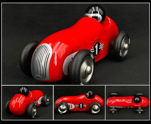 Miniature Vintage de course en bois Trophy Dimensions LxHxP : 20 x 9 x 10 cm - Livré dans une jolie boîte, prête à offrir Matière Bois Laqué, roues en métal et caoutchouc - Couleur Rouge Made in France - Vilac 2286R 39,95 € TTC / Incl. Taxes