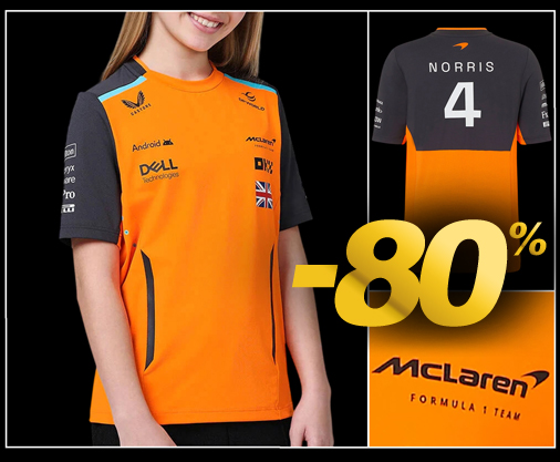 T-shirt enfant Lando Norris McLaren F1 Matière 91% Polyester / 9% Elasthanne - Couleur Orange Papaye / Phantom McLaren TJ5320