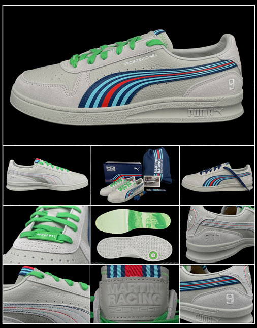 Chaussure mixte Porsche 911 Martini Racing Matière extérieure 100% cuir de vache - Semelle 100% caoutchouc Inclus sac Porsche Martini Racing, deux paires de lacets, un porte-clés Porsche WAP101T0MR Edition Limitée - 911 exemplaires numérotés 179,95 € TTC / Incl. Taxes