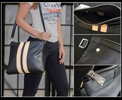 Sac à main cuir Vintage Racing Couleur noir / bandes beige - Matière 100% Cuir /Doublure 100% Coton 3 poches dont une zippées intérieur 1 grande poche extérieure fermeture velcro Largeur 39 cm / hauteur 28 cm / profondeur 9 cm