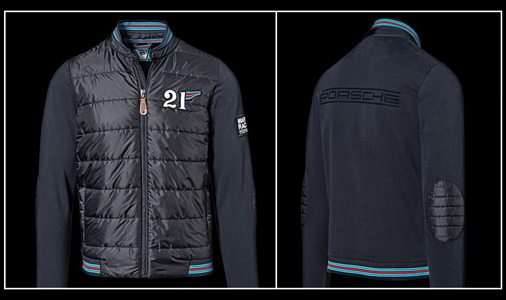 Veste homme Porsche Martini Racing Veste molleton doublure extérieure devant et coudes matelassés Fermeture éclair et col boutonné par pression Couleur bleu foncé - Matière 80% coton 20% polyester / doublure 100% polyester Porsche Design WAP555 189,95 € TTC / Incl. Taxes