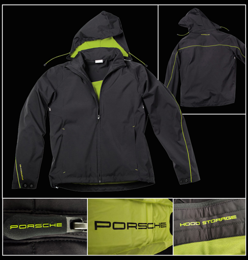 Veste Homme Porsche Sport Collection Coupe-vent léger au look sportif - Intérieur doublé en mesh - Capuche amovible Couleur noir / vert acide - Matière 100 % nylon respirant Porsche WAP543