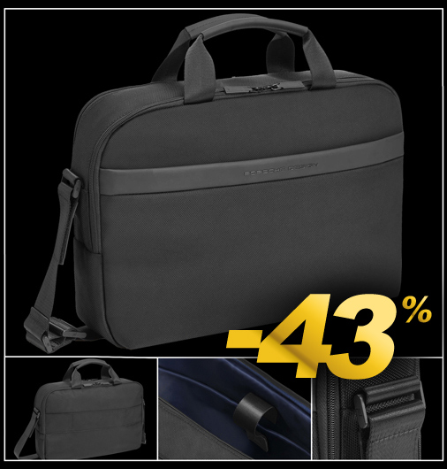 Porte Documents Porsche Design Voyager M Compatible avec ordinateur ou tablette 14.5" - Couleur Noir - Matière Nylon 3 poches internes dont une zippée - 1 poche sur l'avant - Dimensions 42 x 31 x 10 cm Passage pour trolley à l'arrière - 2 anses et 1 lanière réglable Porsche Design ONT01508.001