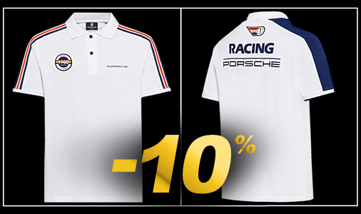 Polo homme Porsche Rothmans Style Bandes aux couleurs Rothmans sur les manches Patch n°1 dans le dos - Matière : 100% coton - Couleur : Blanc Porsche WAP451NRTM