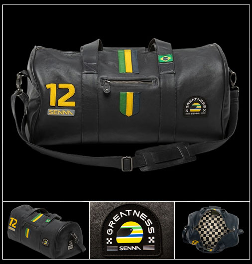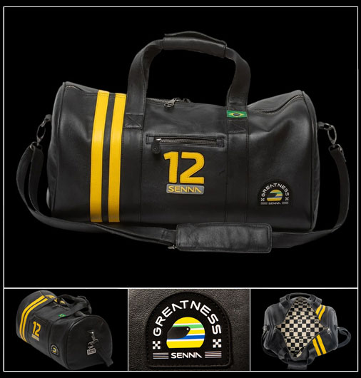 Grand Sac de Voyage en cuir Ayrton Senna Matière 100% Cuir d'agneau - Intérieur 100% Coton - Dimensions 50 x 26 x 26 cm Grand contenant interne zippé - 1 poche intérieure - 1 poche zippée sur le devant 2 anses - 1 sangle amovible - Couleur Noir / Jaune - Poids 1,4 kg Classic Legend Motors 27551-1504 459,95 € TTC / Incl. Taxes