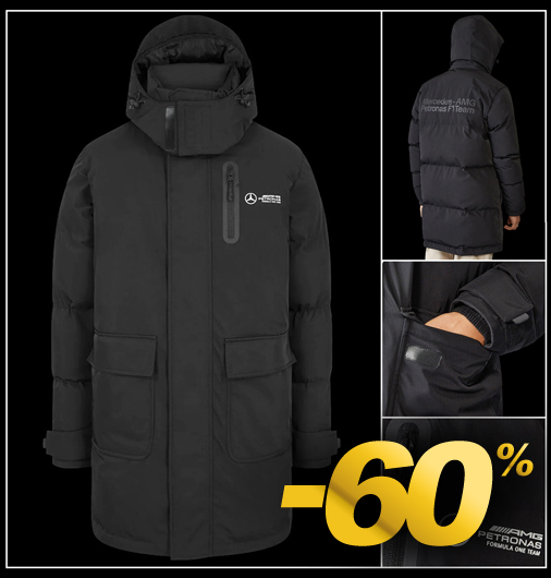 Veste à capuche homme Mercedes-AMG F1 Matière 100% Polyester imperméable - Fermeture zippée - 2 poches latérales 1 poche intérieure - 1 poche poitrine - Capuche amovible - Couleur Noir Mercedes 701227031-001