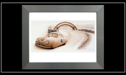 34# Affiche Porsche 356 n°46 Le Mans 1951 Cadre aluminium - 37 x 47 cm