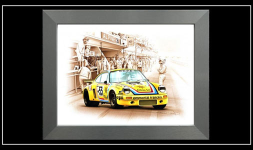 33# Affiche Porsche 911 Carrera RSR n° 53 Le Mans 1975 Cadre aluminium - 37 x 47 cm