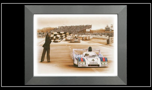 30# Affiche Porsche 936 n°4 Le Mans 1977 Cadre aluminium - 37 x 47 cm