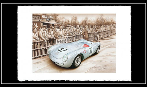 29# Affiche Porsche 550 n°37 n°63 Le Mans 1955 33 x 50 cm