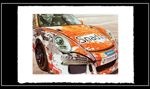 His passion led him to create original and unique works for builders and art and automobile collectors. He draws his inspiration from the history of brands or a car whose beauty he exalts. It describes the expression of a pilot or a crowd that often reflects a heroic era imprinted with romance. His painting goes beyond the hyper realism and expresses the temperament, the vibrations that one feels while watching, listening or driving a car.