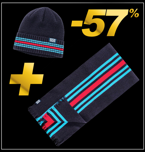 Echarpe & Bonnet Porsche Martini Matière 70% Acrylique / 30% Laine - Couleur Bleu / Rouge - Dimensions Echarpe 160 x 29 cm Porsche WAP5500050P0MR + WAP5500040P0MR
