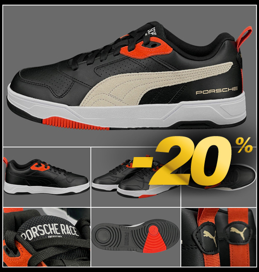 Chaussure mixte Porsche Race Americana Matière extérieur Synthétique - Doublure intérieure Textile Semelle Caoutchouc SoftFoam+ - Couleur Noir / Orange Puma 309092-01