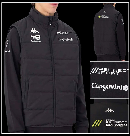 Veste sans manches homme Peugeot Sport Matière 100% Polyester - Fermeture zippée - Couleur Noir Col montant - 2 poches latérales Kappa 332419W-A03 99,95 € TTC / Incl. Taxes