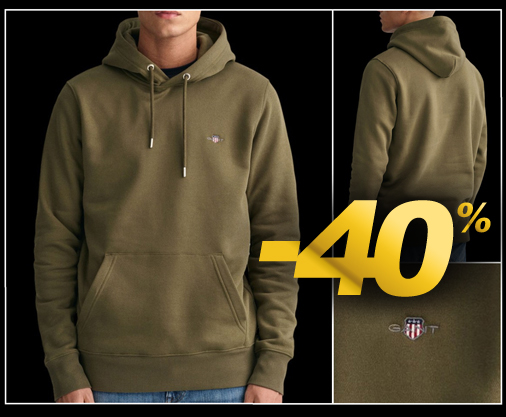 Hoodie homme Gant Matière 78% Coton / 22% Polyester - Couleur Vert Kaki Capuche avec cordon de serrage - Poche Kangourou Gant 2007058-301