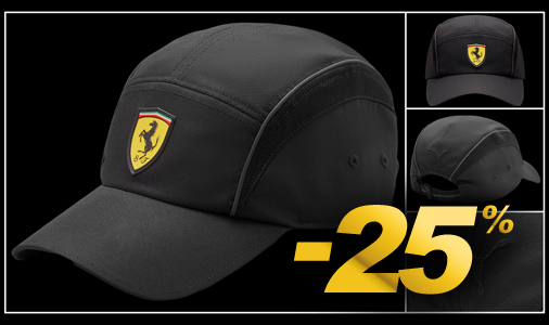 Casquette Ferrari Ecusson Matière 100% Polyester - Taille réglable - Couleur Noir Ferrari 701219077-002