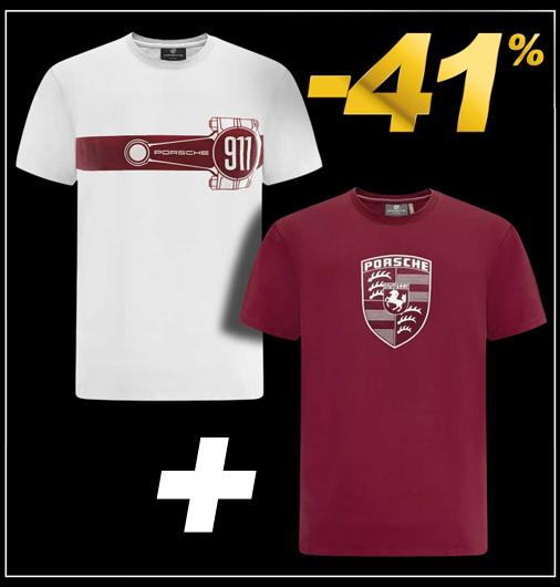 Duo T-shirts Porsche Ecusson & Bielle Matière 100% Coton - Couleur Blanc / Rouge Bordeaux Porsche WAP671PESS + WAP670PESS