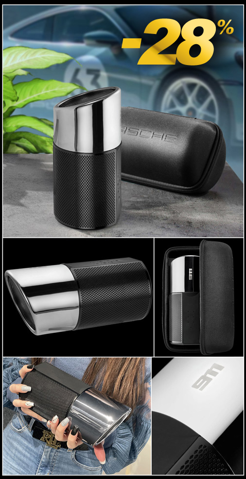 Enceinte Bluetooth Porsche 911 GT3 2.0 Technologies Bluetooth® 5.0 et Qualcomm® aptX™ HD - Etui de rangement Porsche inclus 16 heures d'autonomies - Puissance 60 watts - Dimensions 215 x 99 x 95 mm Couleur Noir - Matière 50% acier inoxydable / 50% plastique Porsche WAP0501100PSPK