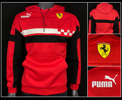 Veste à capuche homme Ferrari by Puma Capuche avec cordons de serrage - Poche kangourou à l'avant Couleur Rouge - Matière 77 % coton / 23 % polyester Puma 531650_02