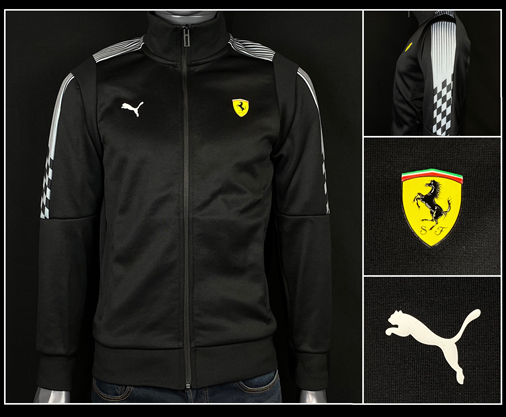 Veste homme Ferrari by Puma Cols droit / Bords côtes - Fermeture par Zip - 2 poches zippées Couleur Noir - Matière 66 % Polyester / 34% Coton Puma 531675_01