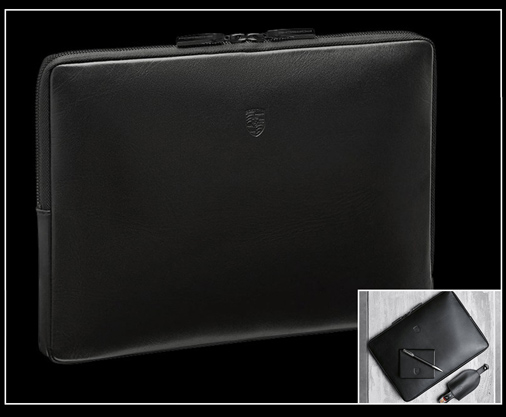 Housse Cuir pour Ordinateur portable / Tablette Porsche Pour des ordinateurs jusqu’à 13 pouces Ecusson Porsche en relief - Fermeture par zip Matière Cuir - Couleur Noir Porsche WAP0300100K