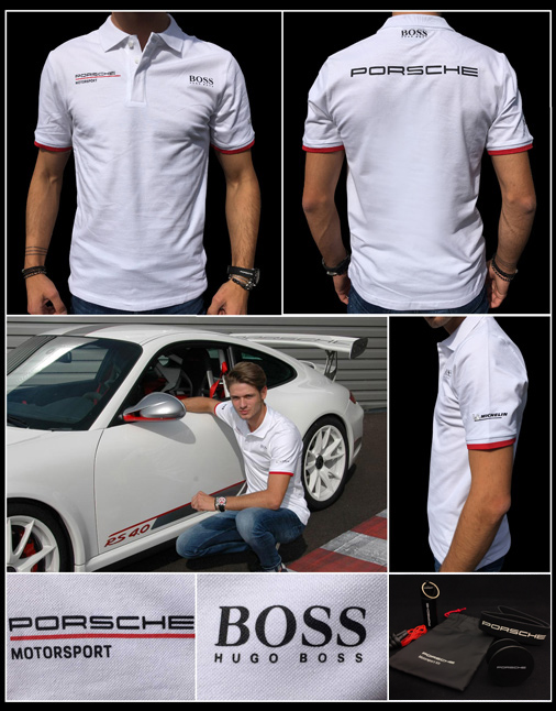Polo homme Porsche Motorsport Hugo Boss Couleur blanc / détails rouge / noir - Matière 95 % coton / 5 % elasthane Tissu technique élastique confortable et respirant Poche poitrine avec fermeture par zip Avec kit d'accessoires Porsche Motorsport Porsche Design WAP430LMS 79,95 € TTC / Incl. Taxes