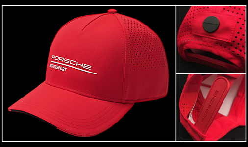 Casquette Porsche Motorsport Taille réglable par picots rigides - Doublure tour de tête éponge Perforée micro-aérée coté et arrière Couleur noir - Matière 100 % polyester Porsche WAP8000020LFMS 29,95 € TTC / Incl. Taxes