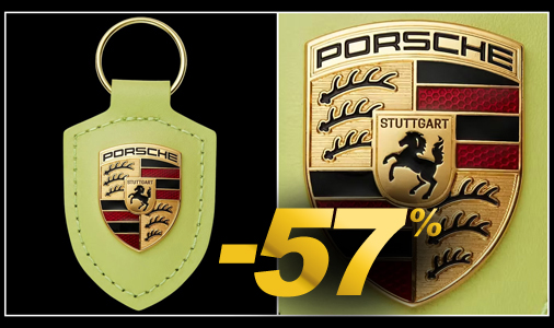 Porte-clés Porsche Ecusson Matière 58% Cuir / 42% Laiton - Ecusson céramique et métal 3 cm Pièce de cuir 7 cm - Couleur Jaune Carthagène - Anneau métal doré Porsche WAP0503570SWSA