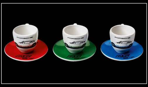 Set de 3 tasses Porsche 911 Carrera RS 2.7 Hauteur 5.4 cm - Diamètre 5.8 cm - Diamètre soucoupe 9.4 cm Avec soucoupe - Passe au lave-vaisselle - Fabriqué en Allemagne