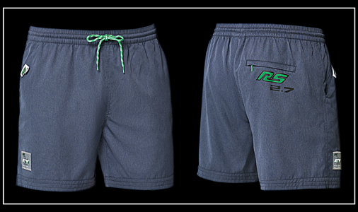 Short de Bain Porsche 911 Carrera RS 2.7 En tissu à séchage rapide, avec slip intégré - Matière 100 % polyester 2 poches latérales / 1 poche arrière zippée - Avec sac de transport Couleur Gris Bleu / détails vert / noir / blanc Porsche Design WAP949J