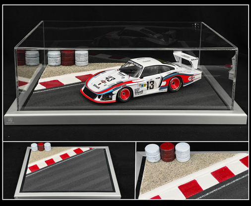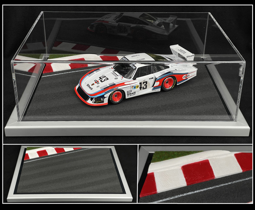 Boite Vitrine Premium pour miniature 1 : 18 Base piste avec vibreurs et pneus rouge et blanc - 42 x 12,5 x 31,5 cm Matière Acrylique anti-rayures 3,5 mm Miniature vendue séparement 119,95 € TTC / Incl. Taxes