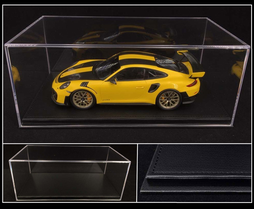 Boite Vitrine Premium pour miniature 1 : 18 Base simili cuir Noir avec surpiqûre Noire - 32,3 x 13,5 x 16,8 cm Matière Acrylique anti-rayures 3 mm Miniature vendue séparement 49,95 € TTC / Incl. Taxes