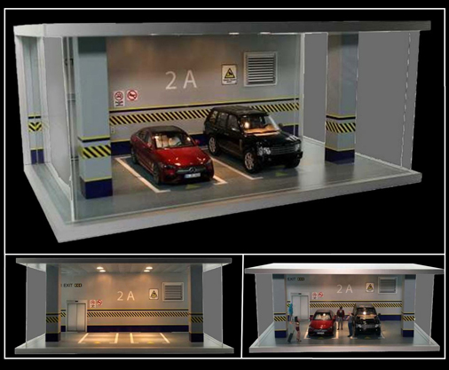 Diorama Showcase Premium Quality Scale 1 : 18 Covered Car Park with Lighting - 68.5 x 29.5 x 42.5 cm