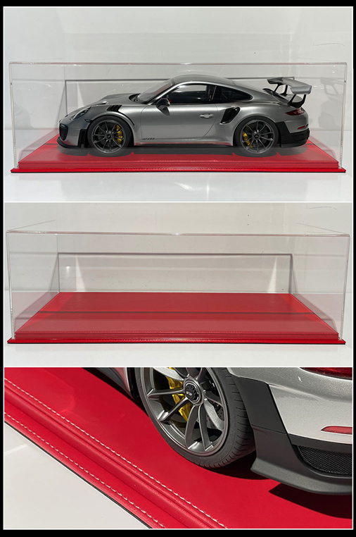Boite Vitrine Premium pour miniature 1 : 18 Base Alcantara Noir avec surpiqûre Rouge - 32,3 x 13,5 x 16,8 cm Matière Acrylique anti-rayures 3 mm Miniature vendue séparement 49,95 € TTC / Incl. Taxes