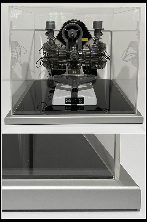 Vitrine pour moteur à monter (Flat 6, 4 Cylindres, Mustang ...) Base cadre metal / fond Acrylique 38 x 31 x 37 cm - Matière Acrylique anti-rayures 3,5 mm Moteur vendu séparement 119,95 € TTC / Incl. Taxes