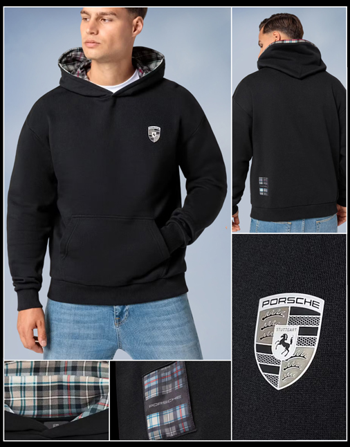 Hoodie homme Porsche 911 Turbo 50 Ans Matière 100% Coton - Couleur Noir / Turbonite - Col boutonné Doublure de la capuche tartan Turbonite Porsche WAP480S50Y 159,95 € TTC / Incl. Taxes