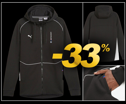 Hoodie homme BMW Motorsport Matière 73% Coton / 27% Polyester - Couleur Noir - Capuche réglable Fermeture zippée - 2 poches latérales Puma 624144-01