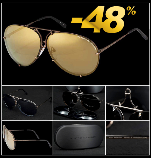 Lunettes de Soleil Porsche Design Monture en titane ultraléger Couleur or - 2 paires de verres interchangeables marron et Gris Verres polycarbonate 100% protection UV - Chiffon de nettoyage et étui de protection inclus Porsche WAP0784780JA69