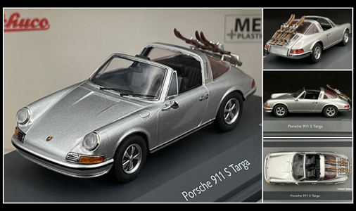 Porsche 911 S Targa 1967 avec Skis Gris argent 1/43 - Schuco 450367800 Edition limitée - 1000 exemplaires