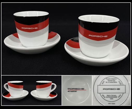 Set de 2 tasses expresso Porsche Motorsport Avec soucoupes assorties - En porcelaine - Passe au lave-vaisselle Diamètre 5.8 cm - Hauteur 5.4 cm - Diamètre soucoupe 10 cm Fabriqué en Allemagne - Porsche WAP0504050NMSE Edition limitée - 5000 exemplaires numérotés 49,95 € TTC / Incl. Taxes