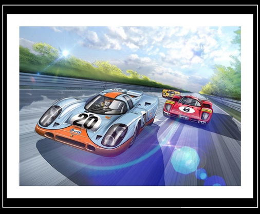 Poster Porsche 917 K Gulf n°20 Illustration tirée de la BD Format 80 x 60 cm