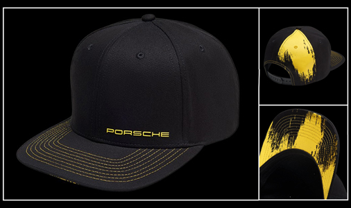Casquette Porsche GT4 Clubsport Forme type snapback / baseball - Taille unique réglable 57 / 62 cm Couleur noir / jaune - Matière 100 % Coton Porsche WAP3400010LCLS